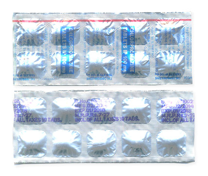 - De gebruikelijke dosering van chloorpromazine is 25–100 mg, afhankelijk van de patiënt en de indicatie.